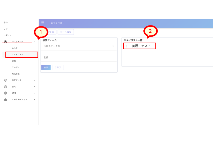 1:左メニューのマスタデータからスタイリストメニューを選択