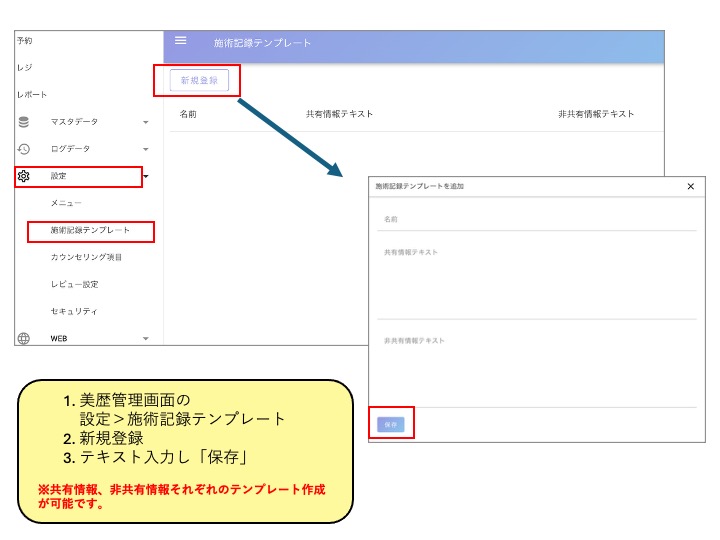 1.【美歴管理画面/for Buisiness】施術記録に入力テンプレート機能が追加されました