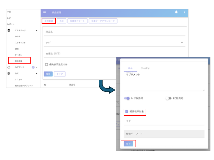 1.【美歴管理画面】レジで軽減税率(8%)の対応が可能になりました