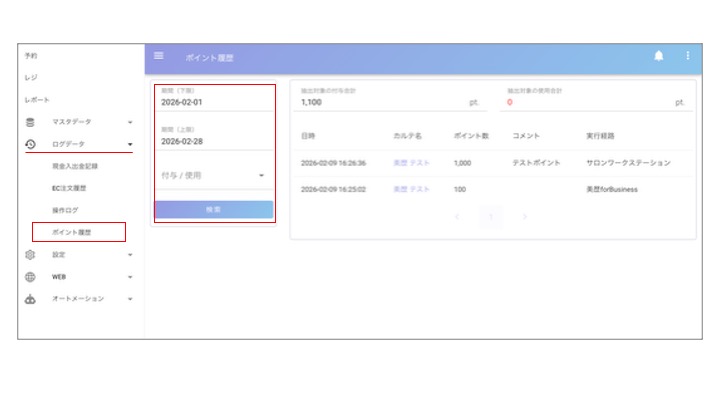 1.【美歴サロンワークステーション】ログデータでポイント履歴の確認が可能になりました
