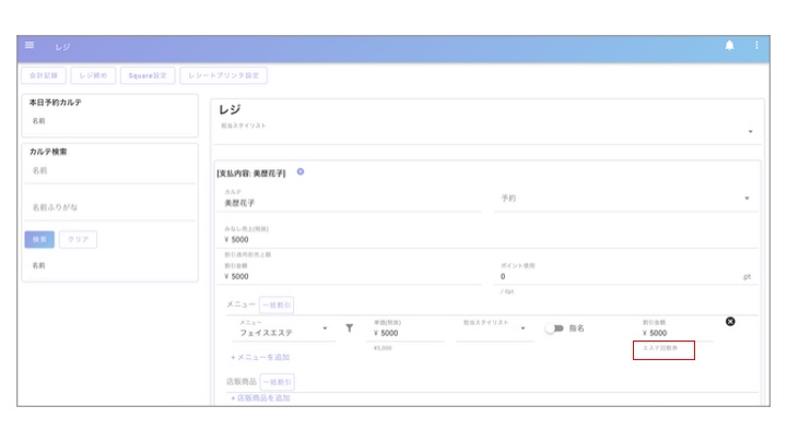 2.【美歴サロンワークステーション】会計時に割引入力でクーポンを選択した際、割引額の下にクーポン名が表示されるようになりました