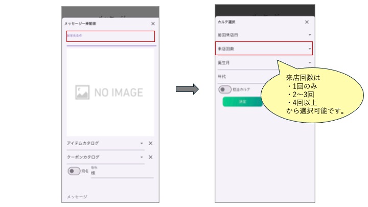 本アップデートにより、来店回数に応じたセグメント配信が可能となり、初めてご来店されたお客様へのフォローメッセージや既存のお客様へのご案内など、より効果的なメッセージ配信が行えるようになりました。